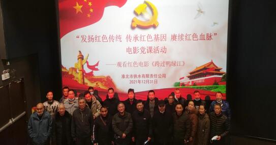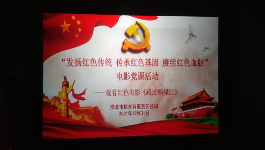 為進(jìn)一步把黨史學(xué)習(xí)教育走深走實(shí),傳承革命精神,2021年12月31日,供水公司組織黨員開展“發(fā)揚(yáng)紅色傳統(tǒng),傳承紅色基因,賡續(xù)紅色血脈”電影黨課活動(dòng),集中觀看紅色電影《跨過鴨綠江》。