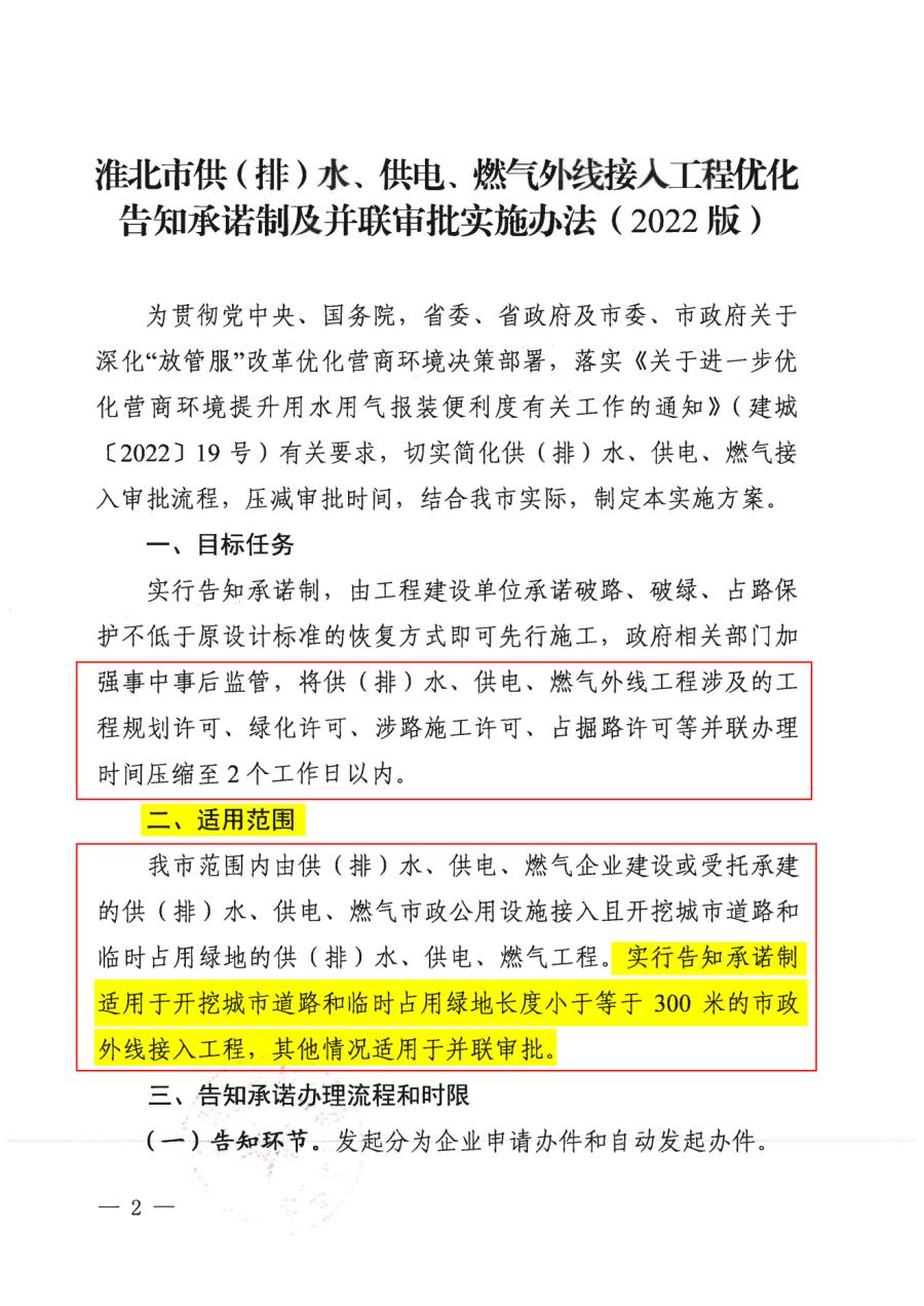 淮北市供(排)水、供電、燃氣外線接入工程優化告知承諾制及并聯審批實施辦法(2022版)