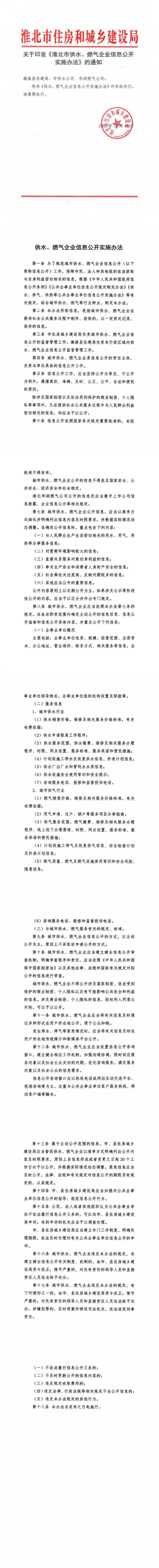 關于印發《淮北市供水、燃氣企業信息公開實施辦法》的通知