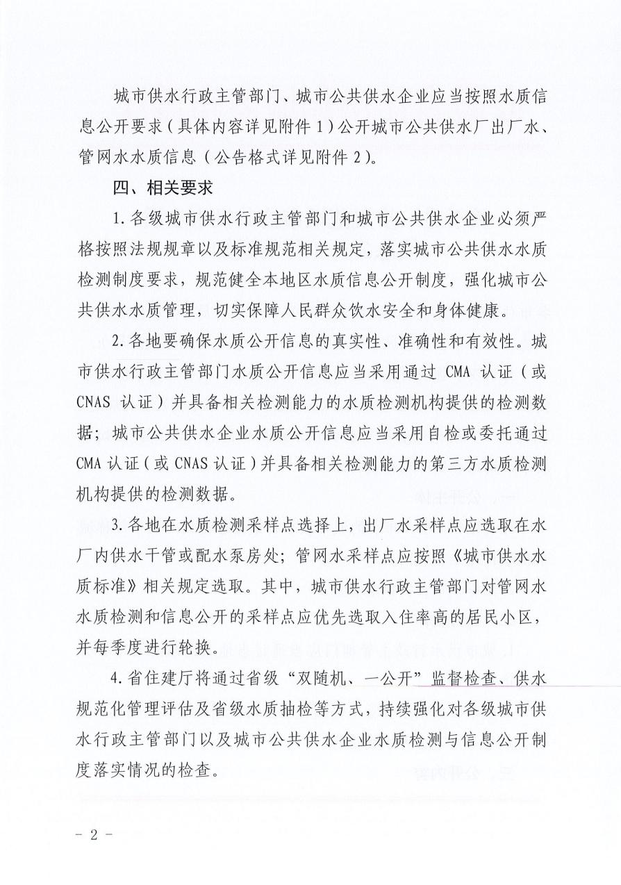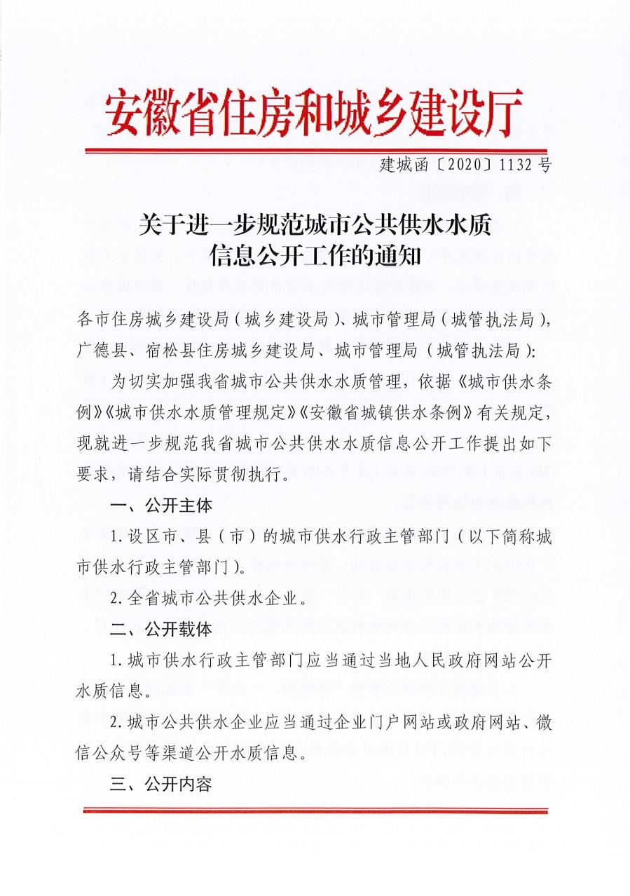 關于進一步規范城市公共供水水質信息公開工作的通知