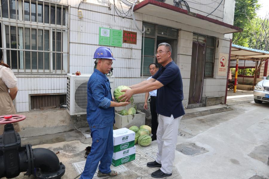 炎炎夏日送清涼,絲絲關(guān)懷沁人心。7月24日上午,供水公司工會主席陳升遠(yuǎn)一行來到公司六號泵房,親切慰問高溫天氣下奮戰(zhàn)在搶修一線的水廠師傅們。為他們送上西瓜、礦泉水等防暑降溫物資。陳升遠(yuǎn)細(xì)心叮囑大家在高溫天氣下工作,一定要做好防暑降溫措施,合理安排工作時間,避免中暑等意外發(fā)生,確保高溫酷暑期間的人身安全,對大家在高溫下堅守崗位的精神表示高度贊揚。公司領(lǐng)導(dǎo)的關(guān)心和慰問讓員工們倍感溫馨和鼓舞。高溫天氣將持續(xù),但員工們紛紛表示,一定會把公司的關(guān)心化作工作的動力,一如既往地堅守崗位,全力做好高溫供水安全保障工作。