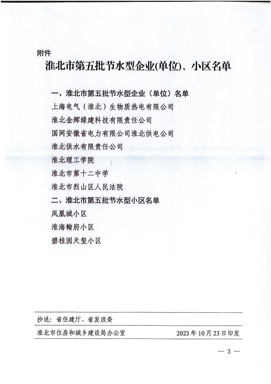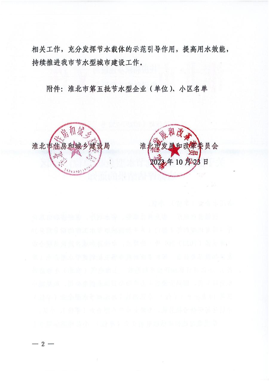 10月23日,接市住房和城鄉建設局、市發改委通知,供水公司通過淮北市第五批節水型企業達標評估考核驗收,被評為:淮北市節水型企業(單位)。