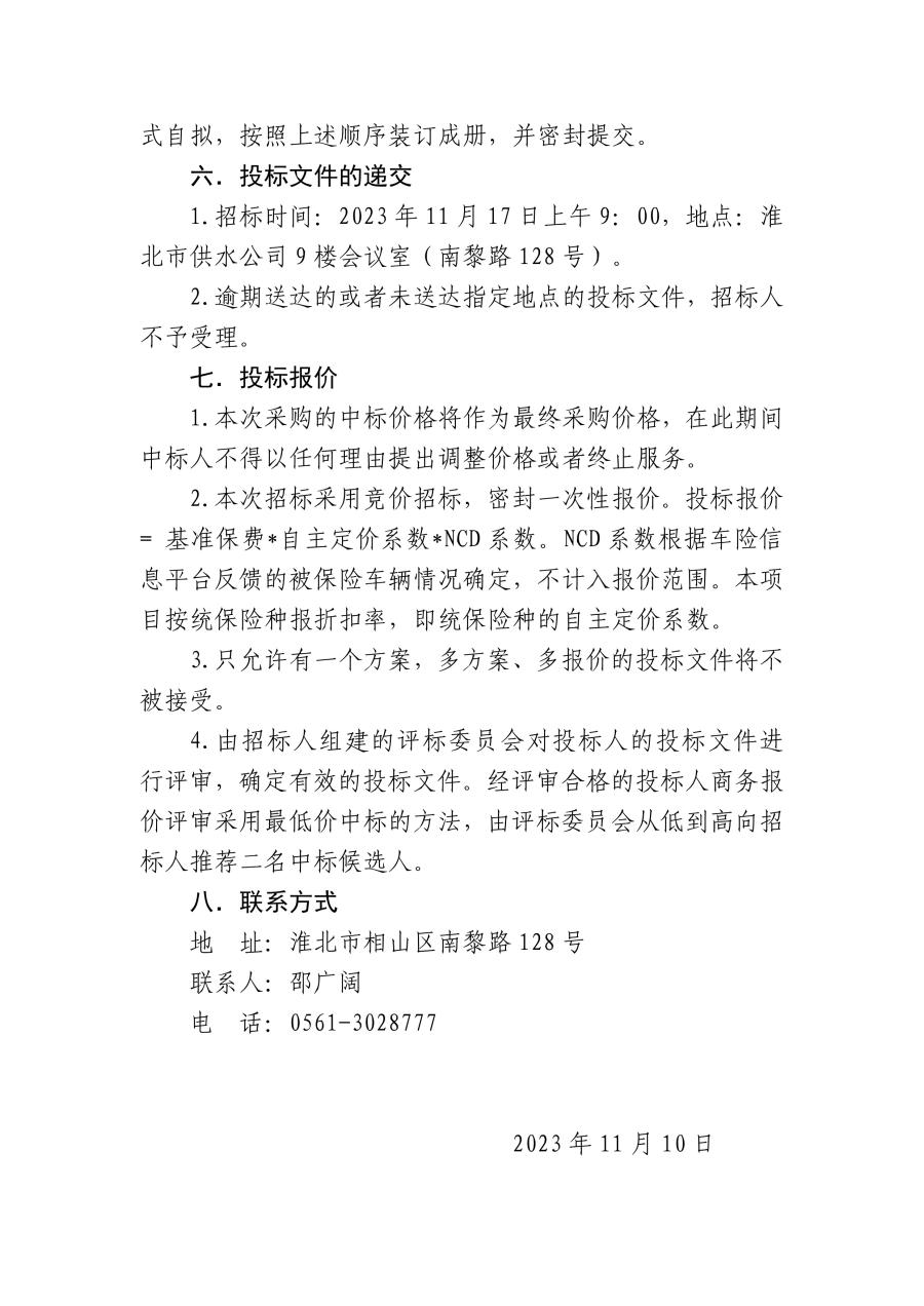 淮北市供水有限責任公司車輛保險集中采購項目邀請公告
