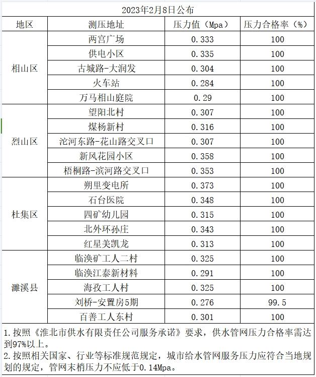 2023年2月8日水壓信息公開