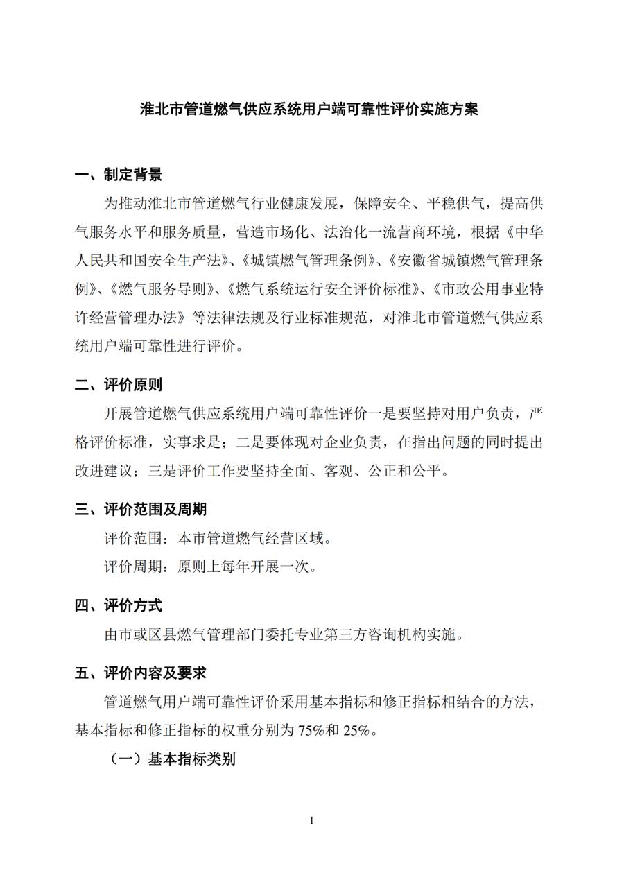 關于印發《淮北市供水供氣系統用戶端可靠性評價實施方案》的通知