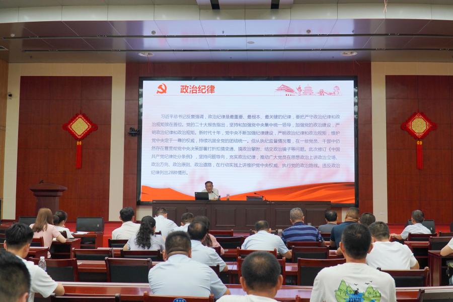 在中國共產黨成立103周年之際,市供水公司舉辦黨紀學習教育專題黨課。公司黨支部書記、董事長林曉海以“恪守六大紀律,筑牢思想根基”為主題,為全體黨員講授專題黨課。黨課緊扣“六大紀律”,結合典型案例分析,重點解讀新增和修改內容。