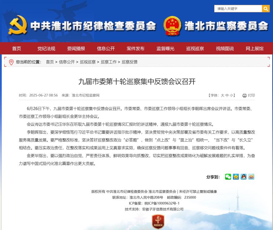 轉發:九屆市委第十輪巡查集中反饋會議召開